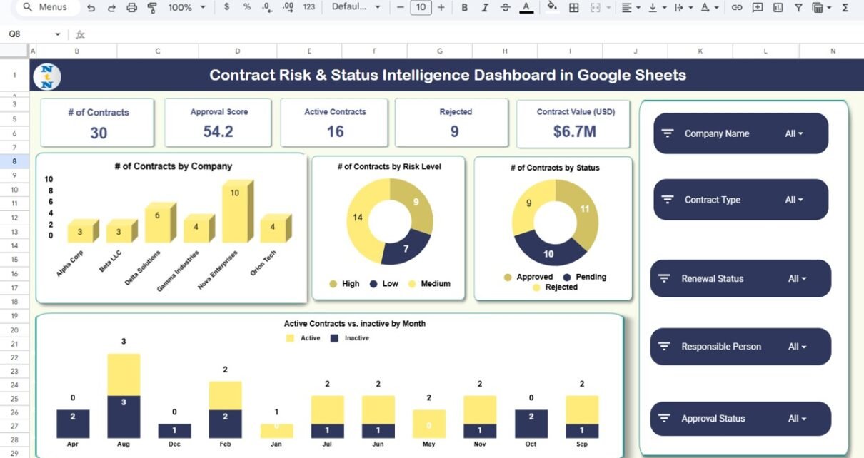 Contract Risk & Status Intelligence Dashboard in Google Sheets