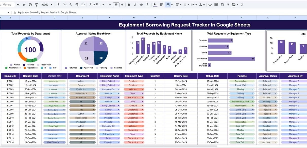 Equipment Borrowing Request Tracker in Google Sheets