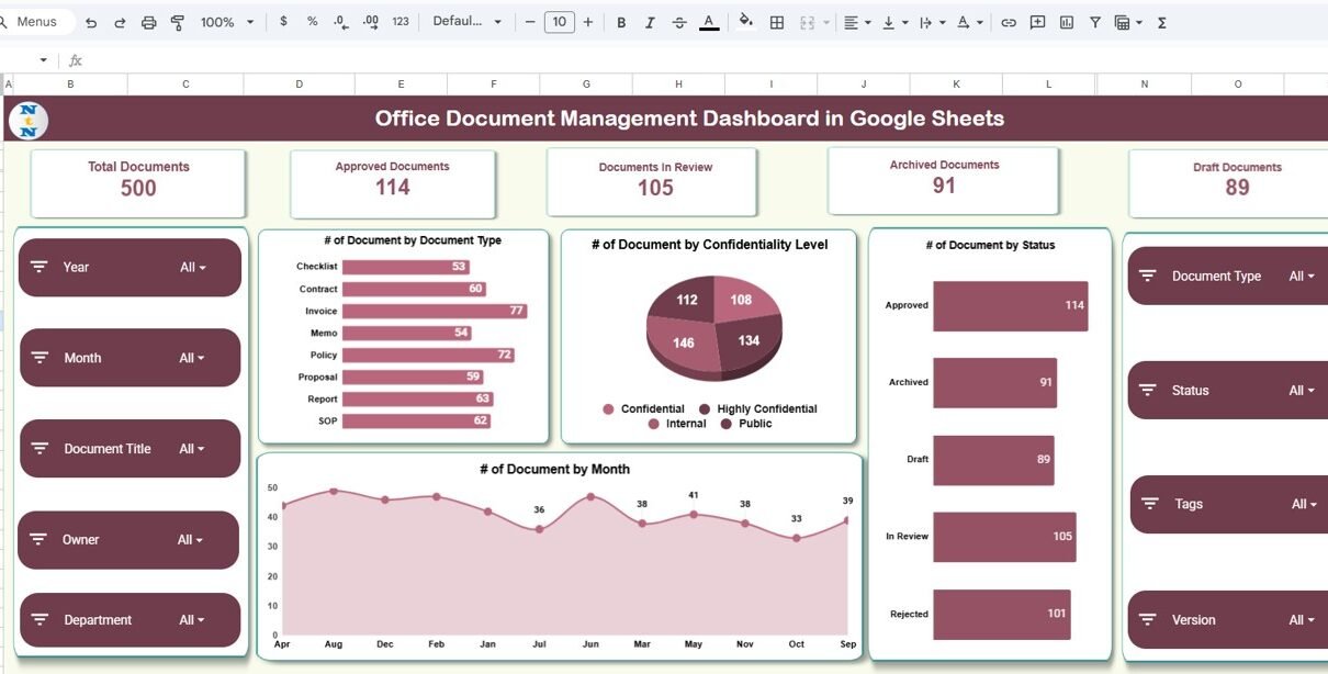 Office Document Management Dashboard in Google Sheets