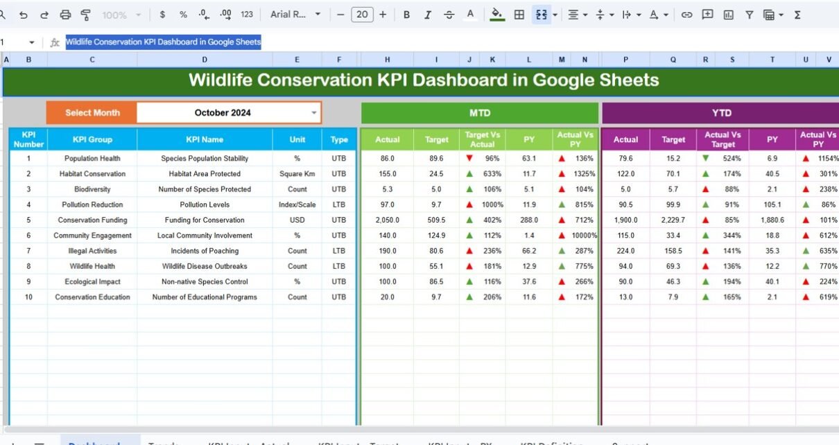Wildlife Conservation KPI Dashboard in Google Sheets