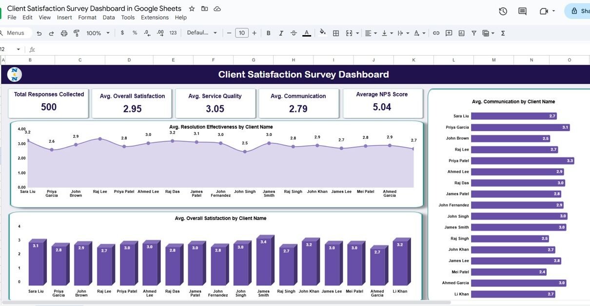 In this article, we will explain the features, advantages, and best practices for using this dashboard to monitor client satisfaction effectively.Client Satisfaction Survey Dashboard in Google Sheets