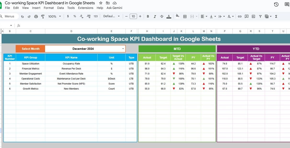 What Is a Co-working Space KPI Dashboard in Google Sheets?
