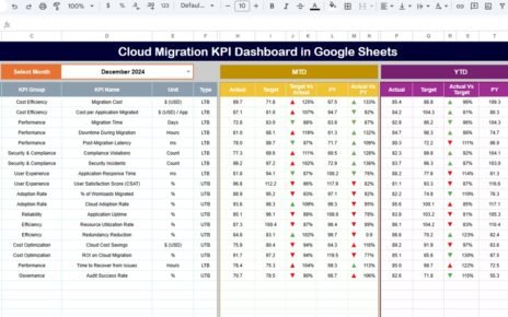 • Centralized Performance Tracking: All KPIs in one interactive sheet.