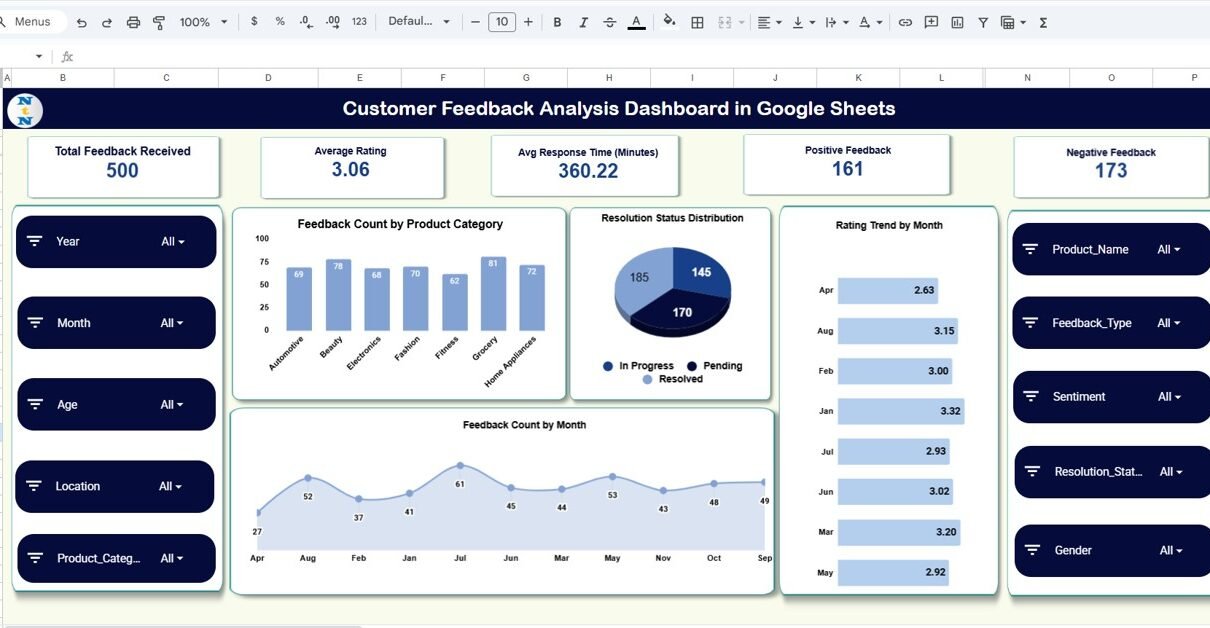 In this article, we explain every card, chart, and feature of the tool in a simple and clear way.Customer Feedback Analysis Dashboard in Google Sheets