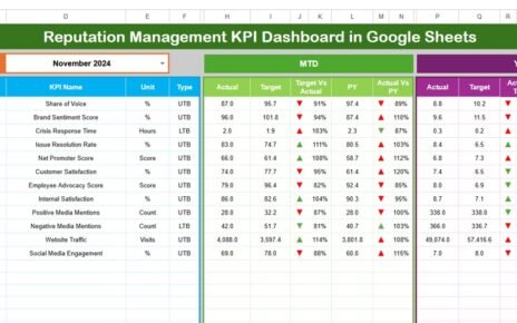 - Data Entry Fields: Record MTD and YTD values for every KPI.