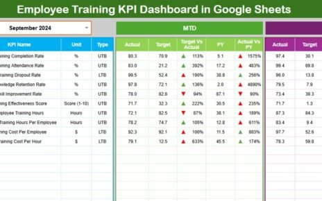 An Employee Engagement Survey KPI Dashboard in Google Sheets turns employee feedback into actionable insights. It helps organizations measure engagement accurately, identify risks early, and track improvement over time. Because the dashboard is structured, visual, and automated, it empowers HR teams and leaders to build a more engaged, motivated, and productive workforce.