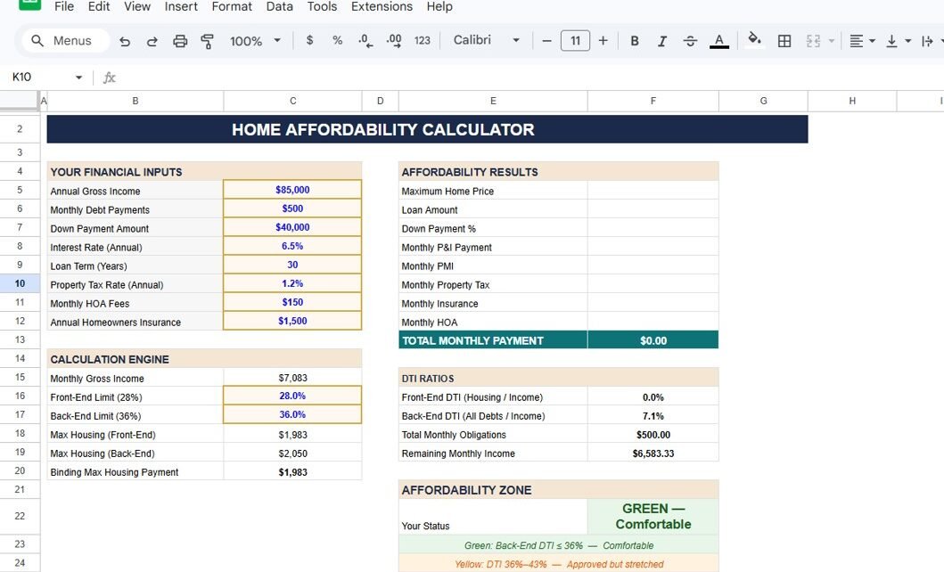 The Home Affordability Calculator in Google Sheets is a powerful and practical tool for anyone planning to buy a home.