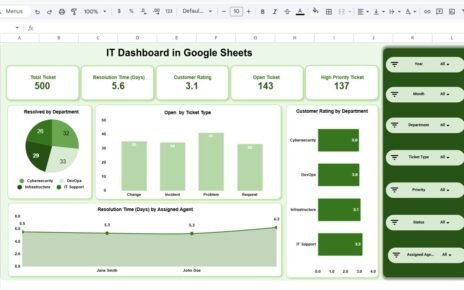 Managing hospitality operations effectively requires keeping track of bookings, revenue, guest satisfaction, and other key metrics. The Hospitality Dashboard in Google Sheets is a ready-to-use tool that helps businesses in the hospitality industry monitor and analyze their key performance indicators (KPIs) in real time. With a focus on bookings, revenue, guest ratings, and room types, this dashboard provides actionable insights that can enhance decision-making and operational efficiency.