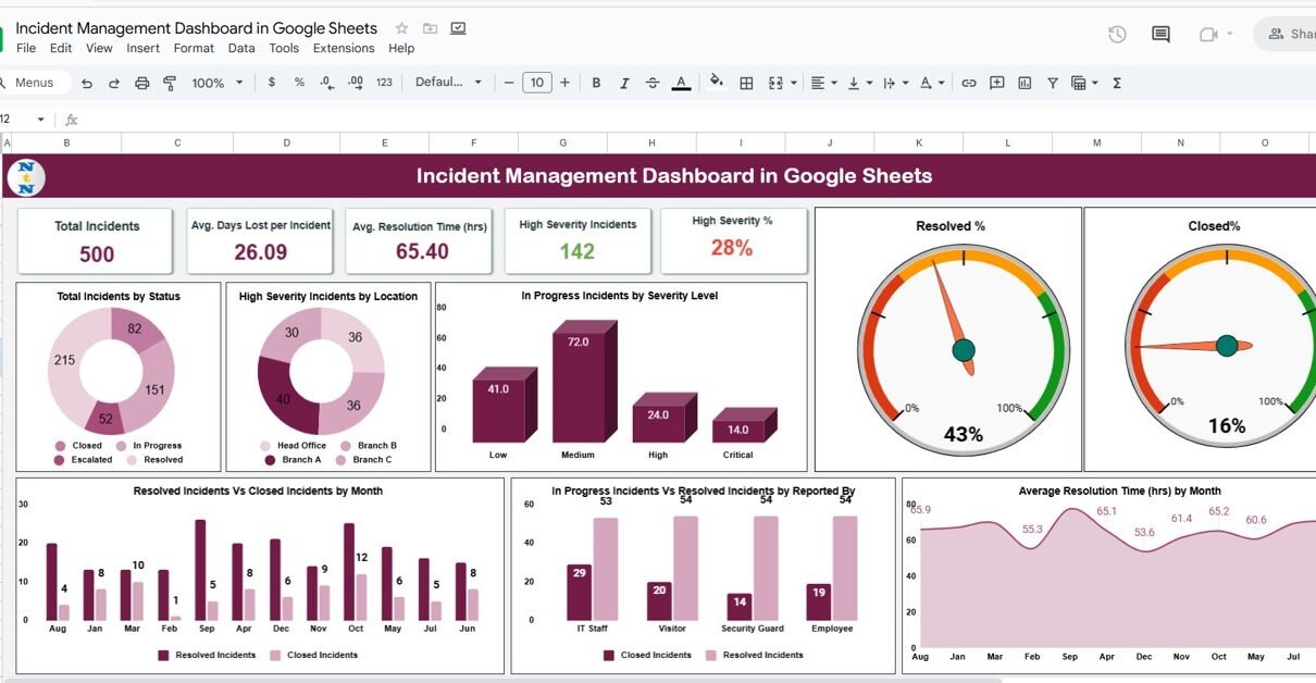 With this dashboard, you can:Incident Management Dashboard in Google Sheets