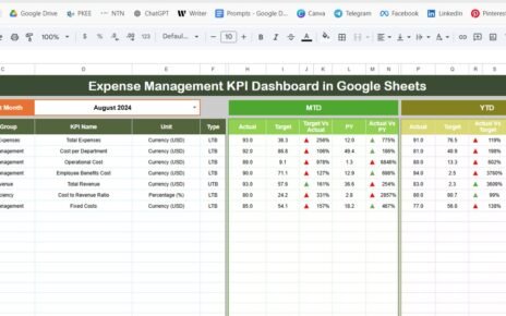 The Pension Fund KPI Dashboard in Google Sheets tracks pension fund performance across 6 structured worksheets, covering MTD and YTD comparisons, target vs actual analysis, trend charts, and a built-in KPI definition sheet. With 6 pre-built pages and automated conditional formatting, this template turns pension reporting from a monthly headache into a 10-minute task. Over 42% of mid-size pension fund teams still rely on manually formatted spreadsheets for KPI reporting, according to industry surveys — this template eliminates that inefficiency.