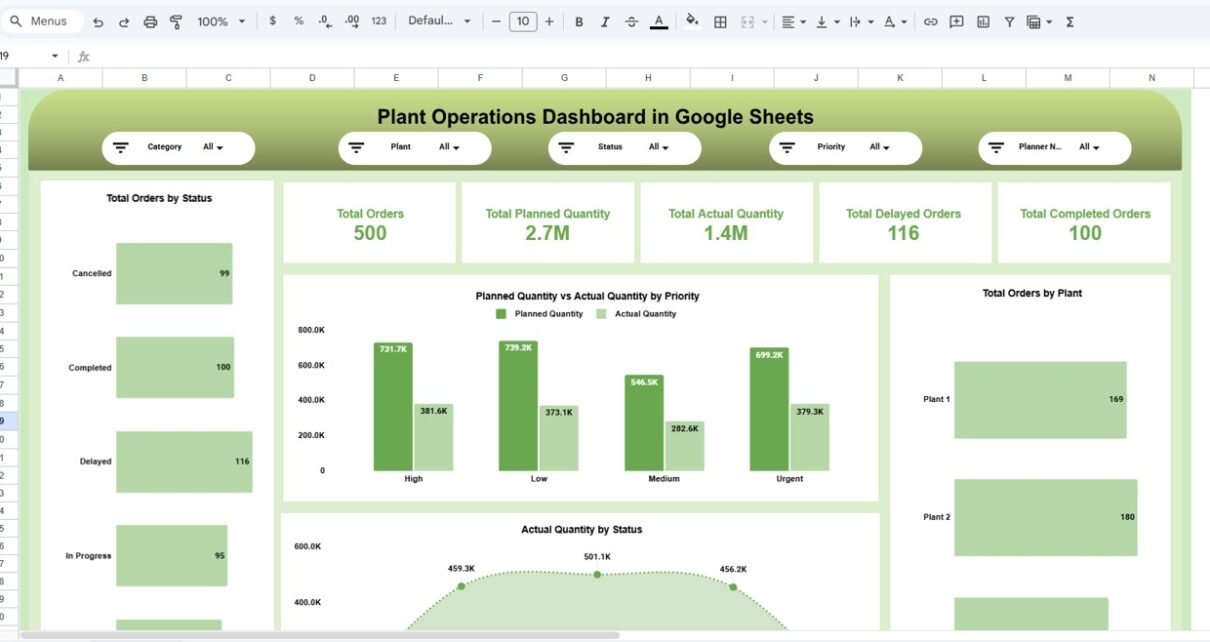 Therefore, businesses now adopt intelligent dashboards that transform operational data into actionable insights. One powerful and practical solution is the Plant Operations Dashboard in Google Sheets — a ready-to-use analytics system designed to monitor plant performance, production progress, delays, and planner efficiency in real time.