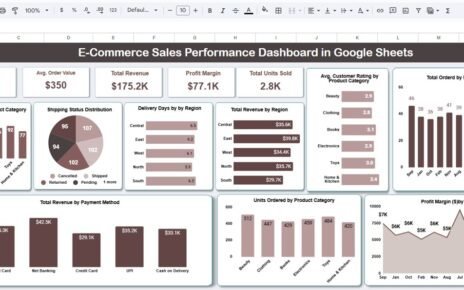 It simplifies tracking by aggregating sales and property data automatically while offering deep insights through charts categorized by status, region, lead source, property type, and client type.Real Estate Sales Performance Dashboard in Google Sheets