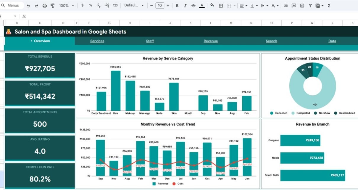 Salon and Spa Dashboard in Google Sheets