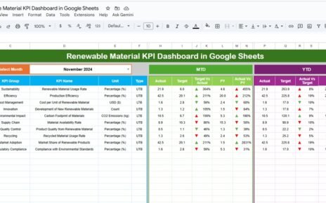 Managing a senior living facility requires careful monitoring of care quality, occupancy, staffing, and operational costs. The Senior Living KPI Dashboard in Google Sheets is a ready-to-use, dynamic tool designed to help administrators and managers track performance metrics with clarity and precision.