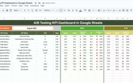 The SEO Performance KPI Dashboard in Google Sheets is a customizable spreadsheet that allows users to track, monitor, and analyze essential SEO metrics (KPIs) month-over-month and year-to-date (YTD). It presents critical data in a visual, organized way — making it easier to spot trends, track progress, and optimize SEO efforts.SEO Performance KPI Dashboard in Google Sheets