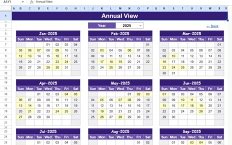 The Dashboard Sheet is the main interface where all KPIs are displayed.