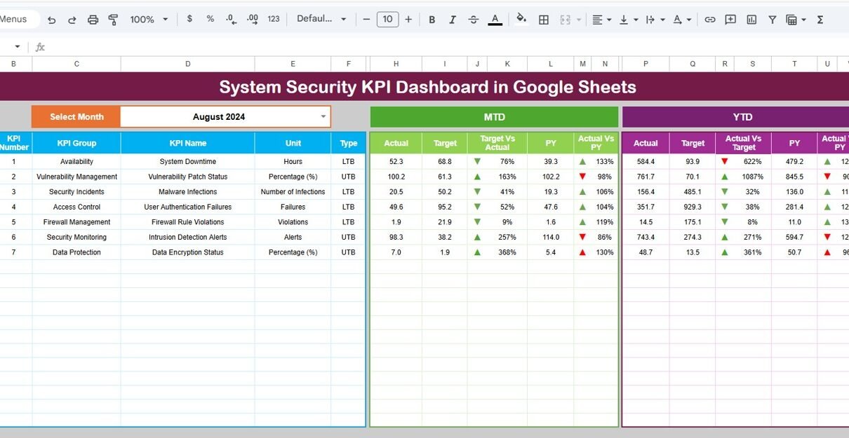 So, how can you monitor your security KPIs, analyze trends, and improve your cybersecurity strategy in one place?System Security KPI Dashboard in Google Sheets