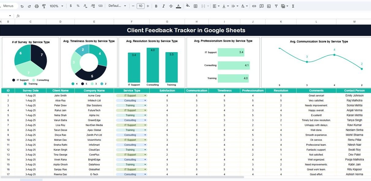 Collecting and analyzing client feedback is essential for improving service quality and customer experience. The Client Feedback Tracker in Google Sheets offers an easy, ready-to-use solution to record, visualize, and analyze client survey data in one place. In this article, we will explain how this tracker works, its key features, and the benefits of using […]