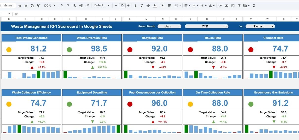 Waste Management KPI Scorecard In Google Sheets