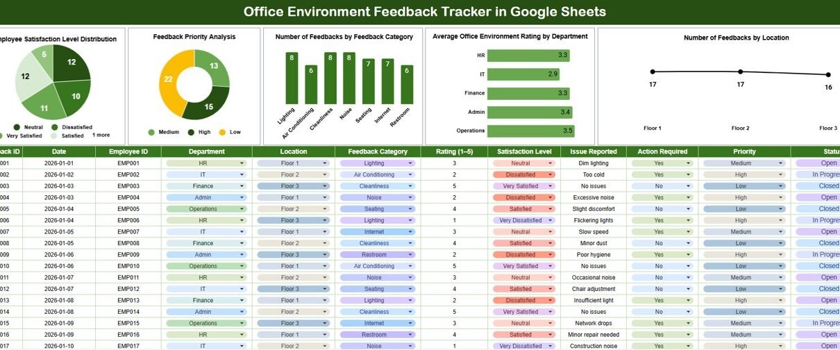 A comfortable and positive office environment directly impacts employee satisfaction, productivity, and retention. Lighting, cleanliness, noise levels, seating, air quality, and overall workplace comfort all influence how employees feel at work. However, many organizations struggle to collect, organize, and analyze office environment feedback because responses remain scattered across emails, surveys, or informal conversations.Office Environment Feedback […]