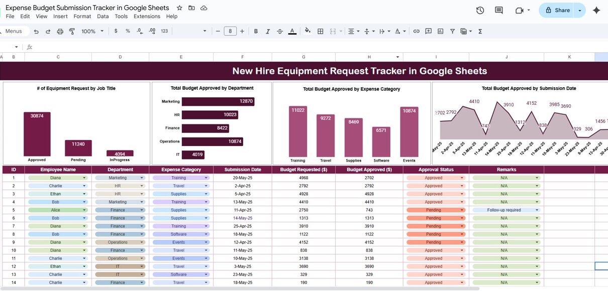 Expense Budget Submission Tracker in Google Sheets