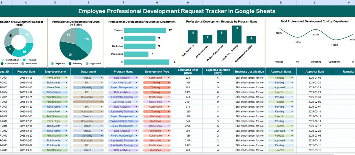 Employee Professional Development Request Tracker in Google Sheets
