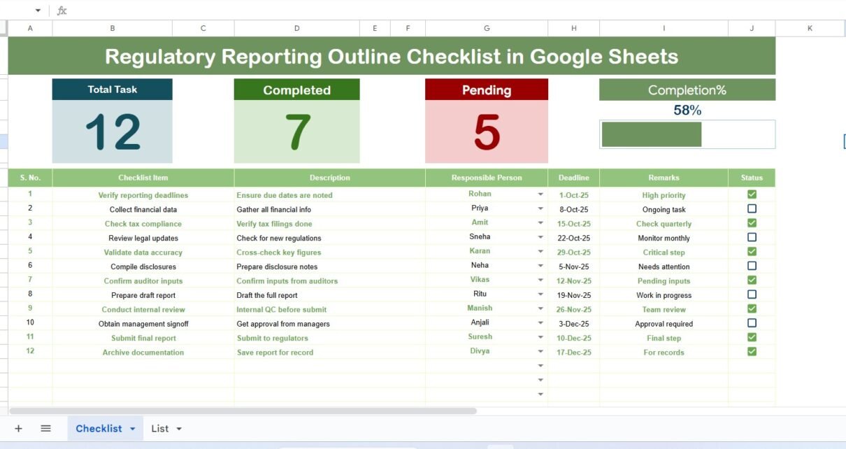 Regulatory Reporting Outline Checklist in Google Sheets