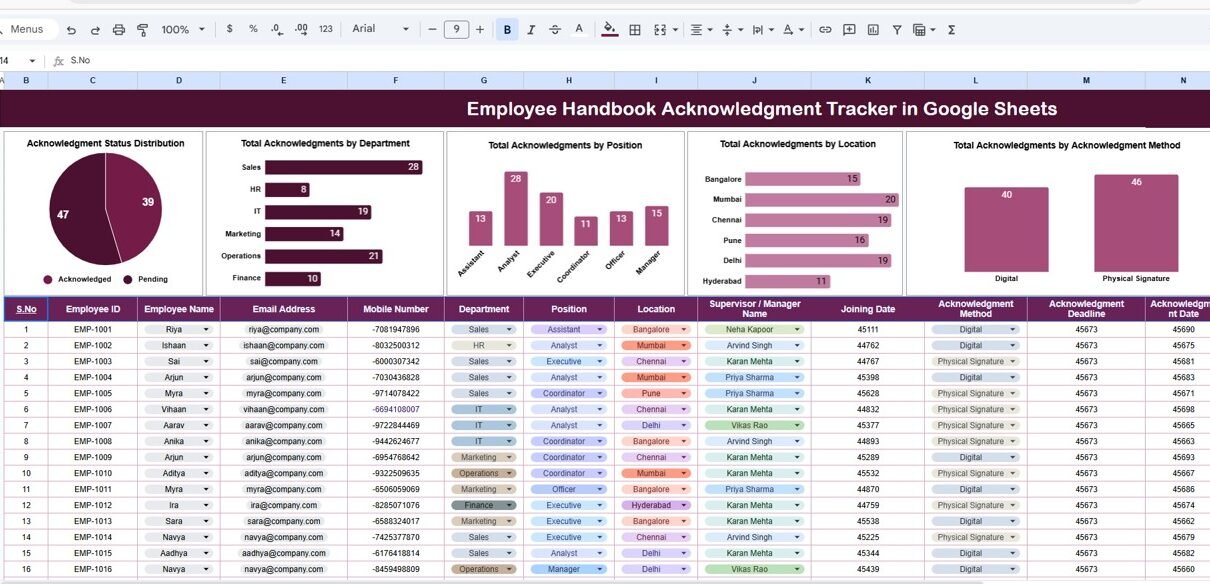 Employee Handbook Acknowledgment Tracker in Google Sheets