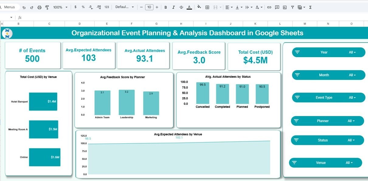 Corporate Event Planning Dashboard in Google Sheets
