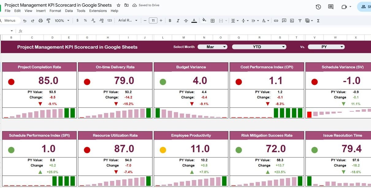 Project Management KPI Scorecard in Google Sheets