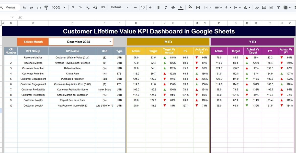Customer Lifetime Value KPI Dashboard in Google Sheets