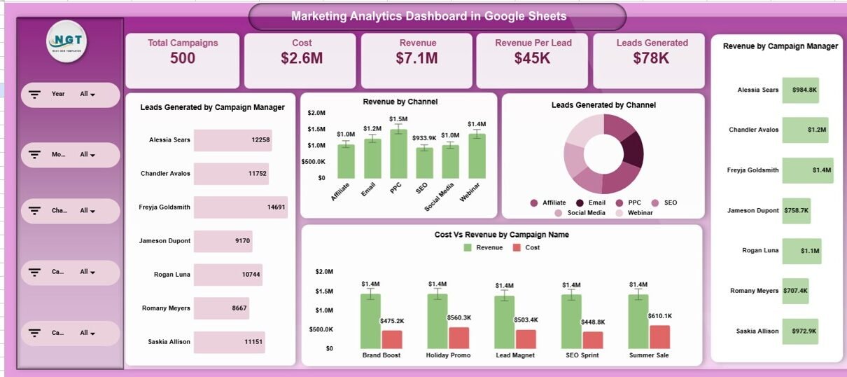Digital Marketing KPI Dashboard in Google Sheets