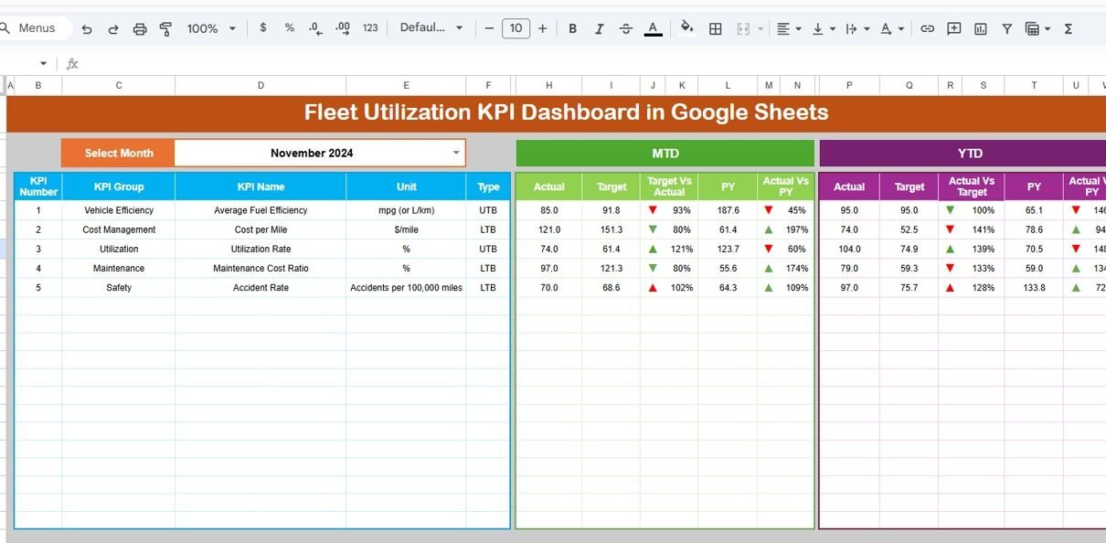 Fleet Utilization KPI Dashboard in Google Sheets