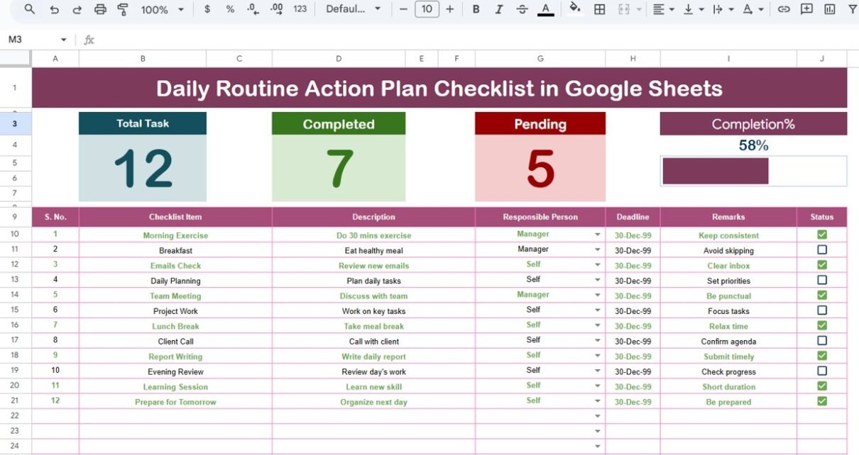 Managing daily routines effectively is the foundation of productivity, personal growth, and stress-free living. Whether you are a student, professional, entrepreneur, or homemaker, having a structured checklist ensures that nothing important slips through the cracks. Instead of relying on manual notes or scattered apps, a Daily Routine Action Plan Checklist in Google Sheets provides a […]