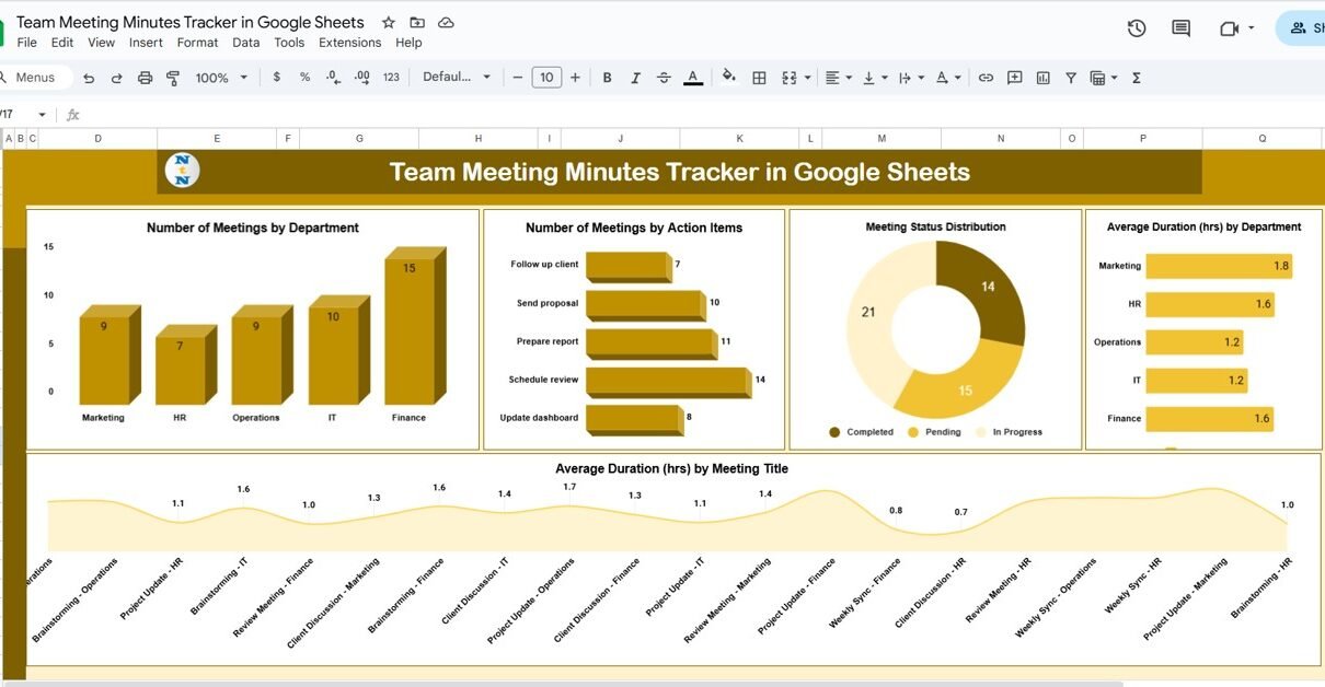 The Team Meeting Minutes Tracker in Google Sheets is an efficient and professional way to manage meetings, record decisions, and track follow-up actions. With interactive charts, smart search functionality, and an easy-to-use layout, this tracker helps improve communication, accountability, and meeting productivity across your organization.Team Meeting Minutes Tracker in Google Sheets