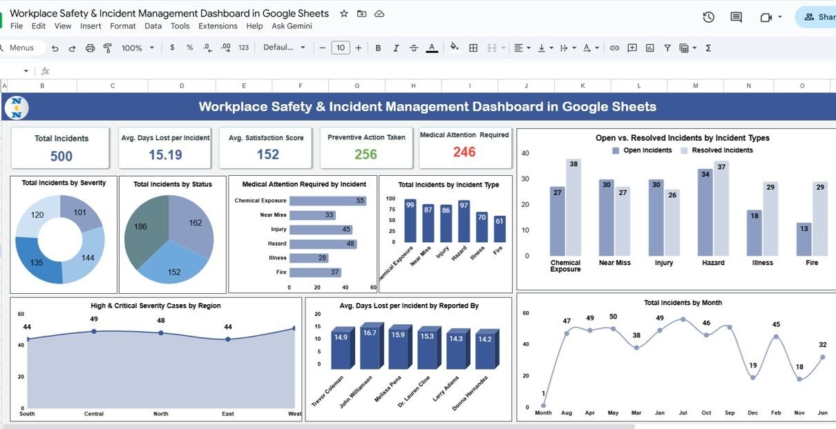 Ensuring workplace safety is a top priority for every organization. Managing incidents, tracking their severity, and taking preventive measures not only protect employees but also improve organizational efficiency and compliance. The Workplace Safety & Incident Management Dashboard in Google Sheets is a ready-to-use tool designed to help safety managers and HR professionals monitor, analyze, and improve workplace safety performance with ease.